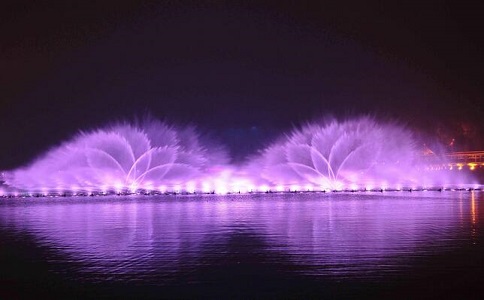 音樂噴泉隨著音樂變換,為城市的人們在夜間增添一份美輪美奐的視覺和聽覺的盛宴,是快節奏的城市生活夜間一項頗為浪漫